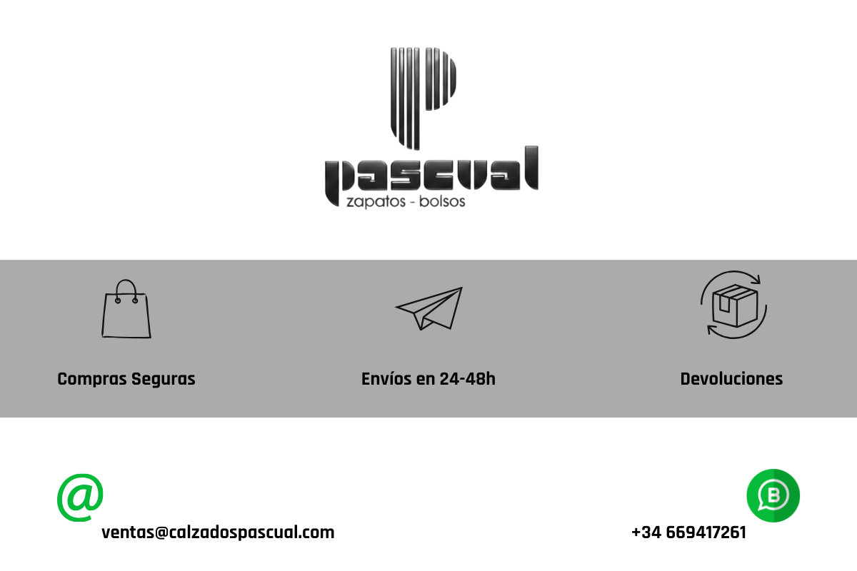 - Producto que, por error, no responde al del pedido: calzadospascual.com correrá con los gastos de recogida del producto equivocado y entrega del correspondiente al del pedido realizado.